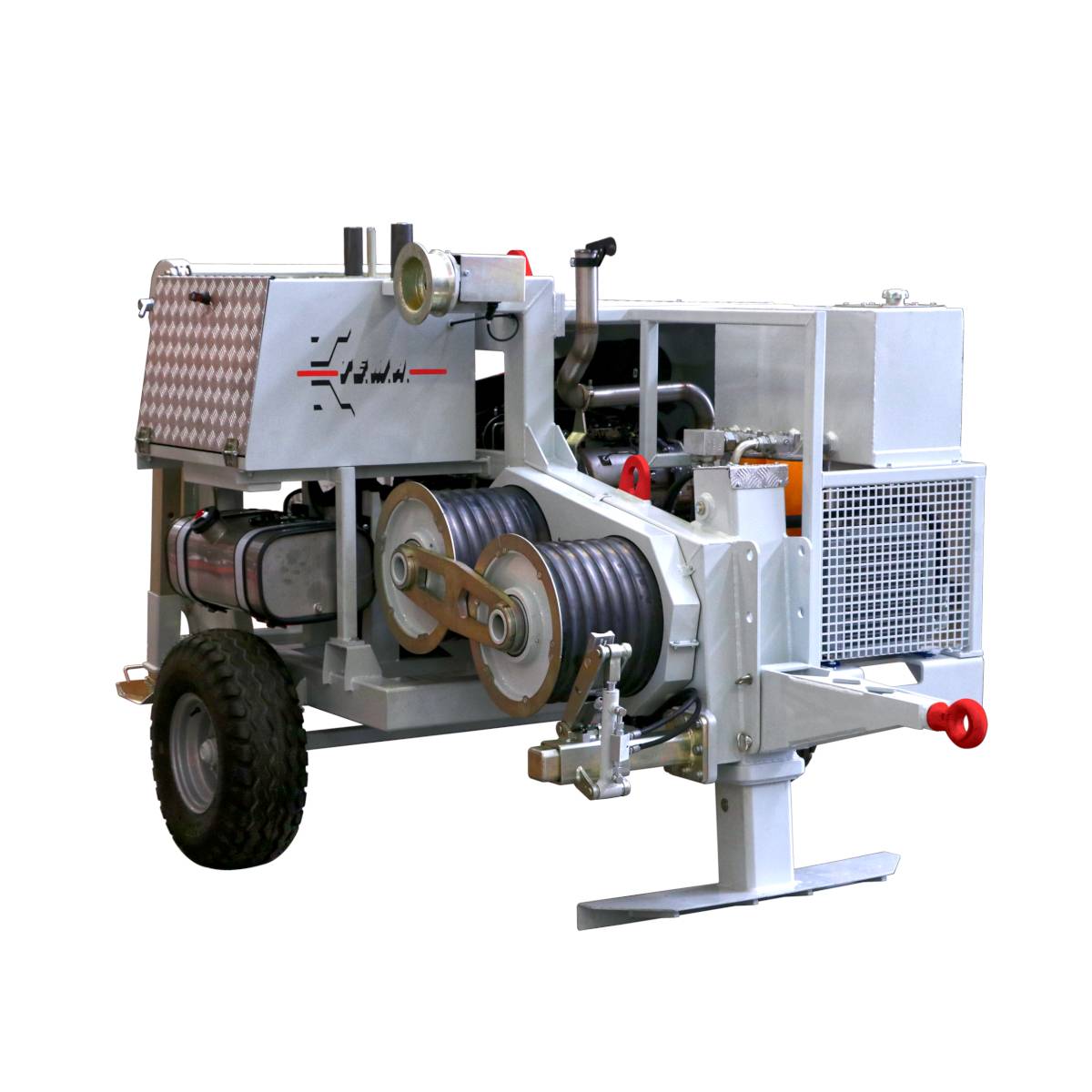 Treuil hydraulique de capacité 50 kN pour le tirage de 1 câblette dans les opérations de déroulage de conducteurs aériens et pour la pose de câbles souterrains.